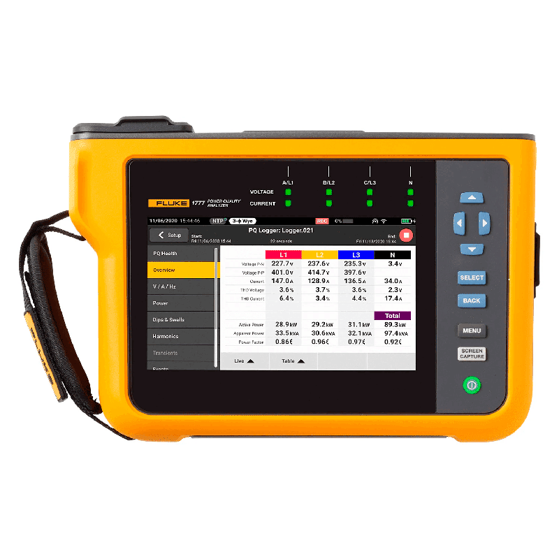 La serie 1770 de Fluke está formada por equipos 2 en 1 que combinan la resolución de problemas de un registrador de calidad eléctrica con las sólidas funciones de análisis y registro de un analizador de calidad eléctrica independiente, todo ello en un solo instrumento portátil y fácil de usar.