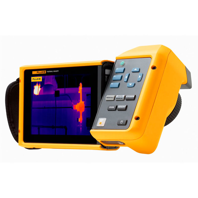La pantalla con rotación de 240 grados facilita la captura de imágenes cuando el equipo se encuentra en zonas de difícil acceso. El diseño ergonómico y la correa para el cuello facilitan en gran medida los largos días de inspecciones. Cuando se utiliza en exteriores, la pantalla giratoria permite realizar ajustes para minimizar los reflejos, y la gran pantalla táctil LCD de 5,7 pulgadas de Fluke proporciona una experiencia de visualización de calidad superior; un instrumento diseñado verdaderamente para cumplir su fin.