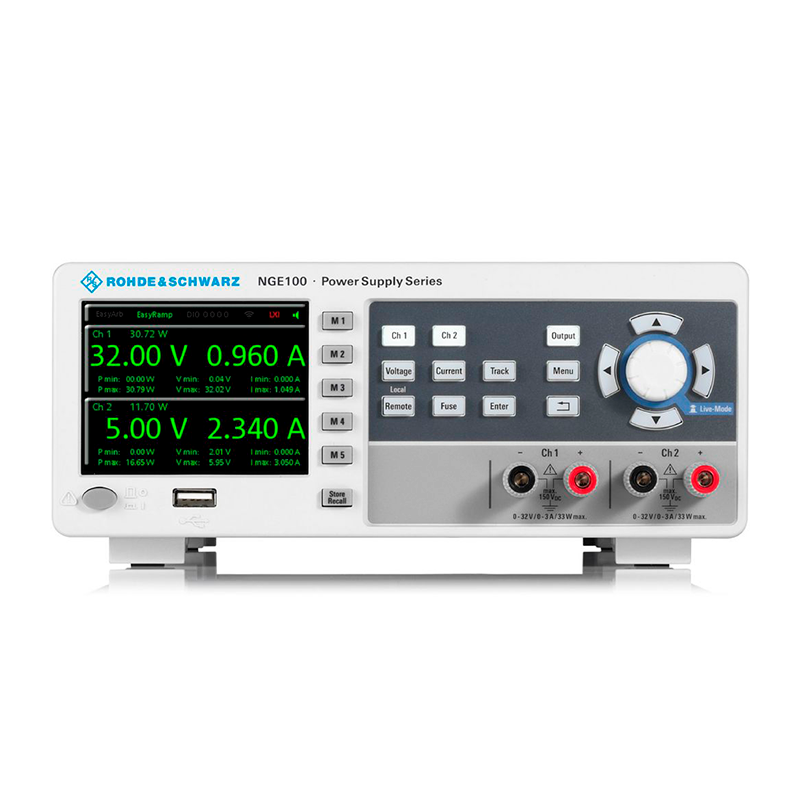 The R&S®NGE100B DC Power supply series consists of robust, high-performance, affordable instruments. They offer high efficiency combined with low ripple plus a variety of comfort functions that are not usually found in this class of power supplies.