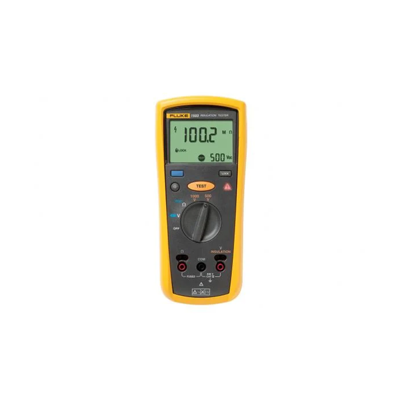 El Fluke 1503 Comprobador de aislamiento es compacto, resistente, fiable y fácil de utilizar. Con sus diversas tensiones de prueba, es ideal para la localización de múltiples tipos de avería, la puesta en marcha de maquinaria y el mantenimiento preventivo.