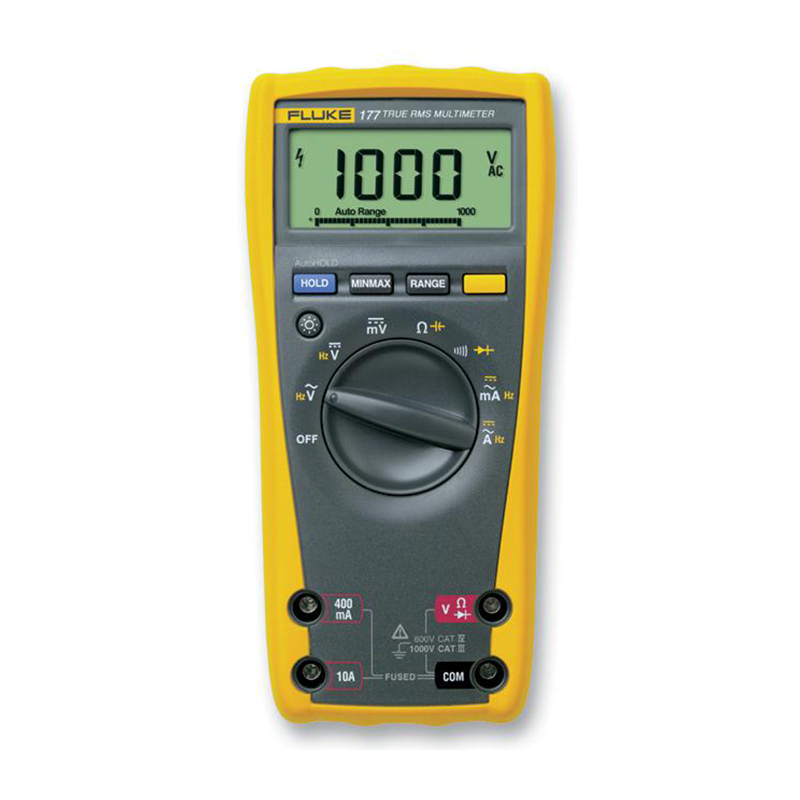Los multímetros digitales Fluke 177 proporcionan medidas de valor eficaz verdadero de corriente y tensión, una resolución de 6.000 unidades, alineaciones manuales y automáticas, y medidas de frecuencia, de capacidad, de resistencia, de continuidad y de diodos. Además, el Fluke 177 tiene una precisión básica superior del 0,09 % y pantalla digital con gráfico de barras analógico y sistema de retroiluminación.