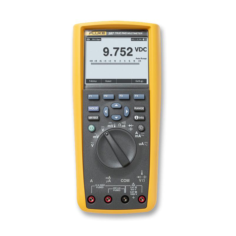 El multímetro de verdadero valor eficaz Fluke 287 para componentes electrónicos con función de registro de datos TrendCapture documenta rápidamente el rendimiento del sistema y muestra gráficamente lo que ha sucedido. Sus singulares capacidades de registro y representación gráfica implican que usted ya no tendrá que descargar las lecturas registradas a un PC para detectar una tendencia. Nunca antes el Fluke 287 proporcionó tanta precisión y prestaciones en un multímetro de mano como ahora.